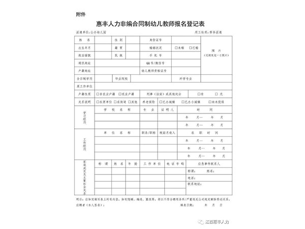 為滿足我市公辦幼兒園師資需求,我公司面向社會(huì)公開招聘一大批非事業(yè)編合同制幼兒教師,以勞務(wù)派遣的方式與用人單位進(jìn)行勞動(dòng)力資源開發(fā)合作。現(xiàn)將有關(guān)事項(xiàng)公告如下:一、招聘人數(shù)及崗位我市招聘非事業(yè)編合同制幼兒教師50名,具體崗位在選崗前公示。二、招聘方式通過第三方勞務(wù)公...